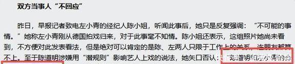 就凭几张车库的照片,外面的人就开始说我们同居了。左小青的经纪人说“这根本不可能”,还一再重申“就只是合作工作关系”。