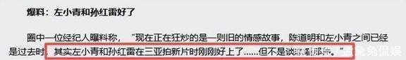 有人爆料说:“左小青和孙红雷在三亚拍新片的时候,关系特别好,但不是那种谈恋爱的意思。”